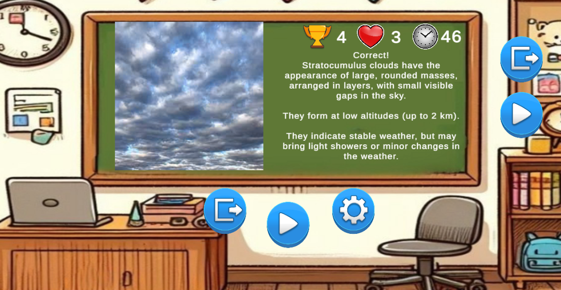 귀여운 구름 님보와 함께 구름의 매혹적인 세계를 탐험해보세요. 님보가 여러분을 하늘 여행으로 안내해 줄 거예요! 이 교육용 게임에서는 적운, 권운, 난층운 등 다양한 유형의 구름에 대해 알아보고, 날씨에 대한 흥미로운 사실과 하늘의 형성을 관찰하여 간섭하는 변화를 예측하는 방법을 알아봅니다.