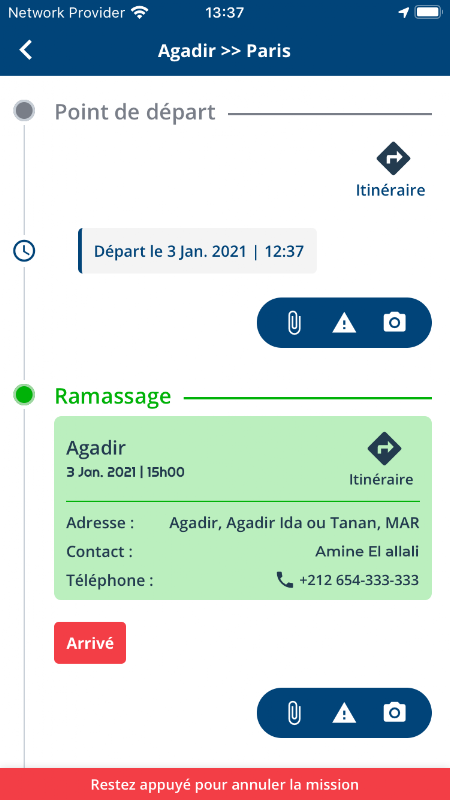 - un suivi des localisations GPS des transports avec mode en ligne / hors ligne