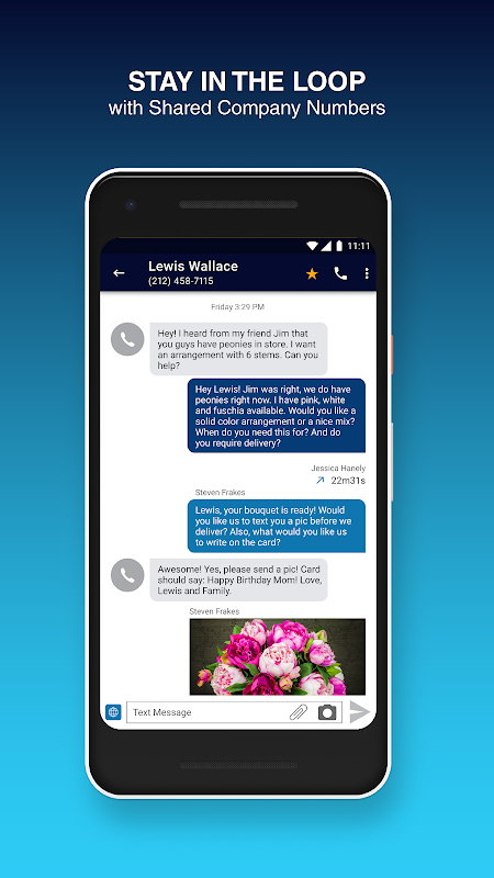 • Shared Business Phone Numbers: have members from your team answer client calls and texts