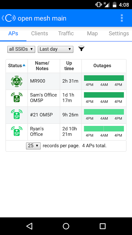 CloudTrax 앱을 사용하면, 당신의 안드로이드 장치에서 네트워크를 만들고 액세스 포인트의 상태를 볼 수, 연결된 사용자와 사용을 참조, 네트워크 설정 등을 업데이트 할 수 있습니다. 모바일 앱과 완벽하게 CloudTrax.com에서 전체 컨트롤러 사이를 전환합니다.