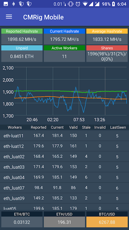 CMRig Ethermine Notifier is simple application for checking your miners on Ethermine pool (Ethermine.org). Check your current Hashrate, Balance, Workers, and many other information. Get a notification when you turn off your miner!
