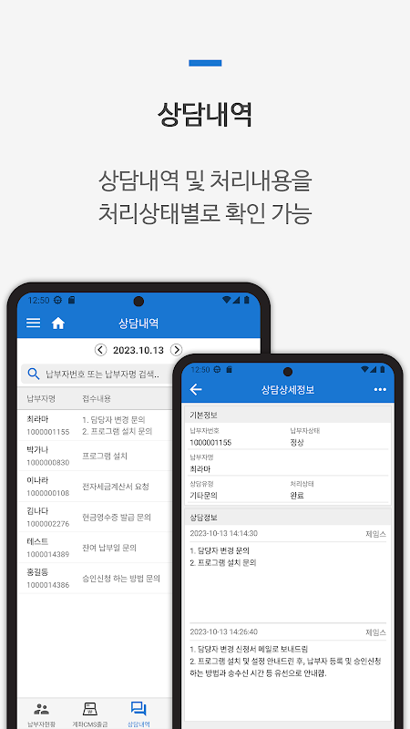 - 해당 납부자에 대한 다양한 이력 확인 가능