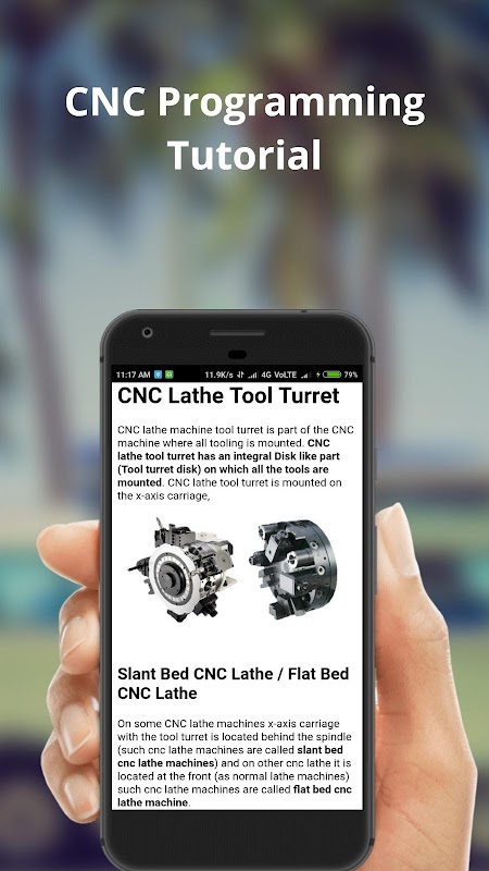 Computer numerical control (CNC) is the automation of machine tools by means of computers executing pre-programmed sequences of machine control commands. This is in contrast to machines that are manually controlled by hand wheels or levers, or mechanically automated by cams alone.This is FREE app will teach you that how to use a CNC Programming.