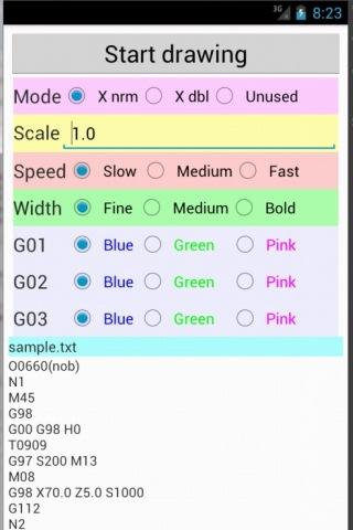이 CNC 트레이서 프로그램은 NC (수치 제어) 프로그램에서 만든 이미지를 그립니다. CNC 추적기는 G90, G17, G00, G01, G02 및 G03 등의 명령을 지원합니다. 다른 commnds는 igonored됩니다. Y. 최대 파일 크기가 19678 바이트로 C는 트레드된다. 모든 서브 루틴은 지원되지 않습니다. 댓글 : G와 같은 문자 또는 사용하지 마십시오.