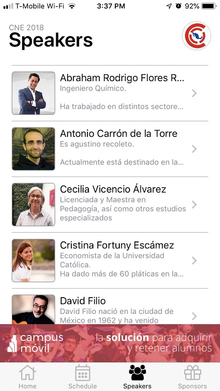 Con la aplicación, usted puede ver el itinerario, patrocinadores, discursantes, recibir alertas, y mucho mas!