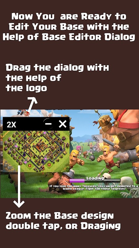 This app will help you to easily edit your base, with the help of floating image, which will allow user to edit the base and looking at the image simultaneously.