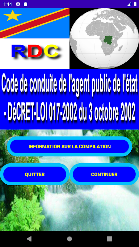 이 응용 프로그램을 사용하면 콩고민주공화국 실정법에 직간접적으로 관련된 모든 사람이 신정보통신기술(New Information and Communication Technology) 도구를 사용하여 법률 텍스트를 최대한 활용할 수 있습니다.