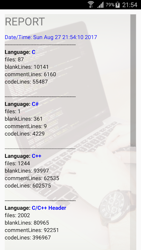 Code Line Counter (clc) is a program that determines the number of blank, commented and program lines in source-code. As an input, a file or folder is taken.