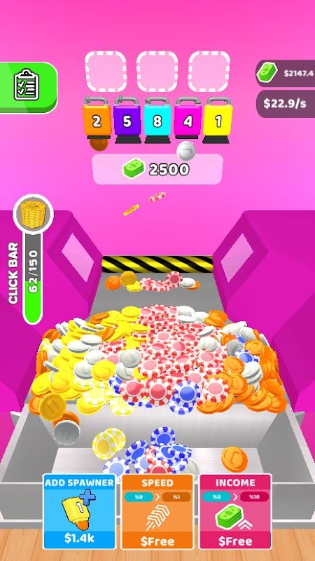 가능한 한 많이 동전을 밀어 넣으십시오. 큰 상품을 받으세요.