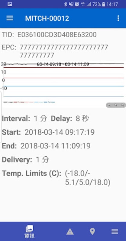 Cold Chain 앱은 콜드체인 시스템에 사용되는 온도 모니터링 애플리케이션으로 무선 블루투스(BLE)를 통해 AUR700 핸드헬드 리더에서 온도 데이터를 다운로드할 수 있으며 운영자가 온도를 알 수 있도록 알람 보고서를 표시하는 기능이 있습니다. 배송 중 품질 관리 온도 데이터는 나중에 데이터 검색 및 분석에 사용할 수 있도록 BeeCool 클라우드에 업로드할 수 있습니다.