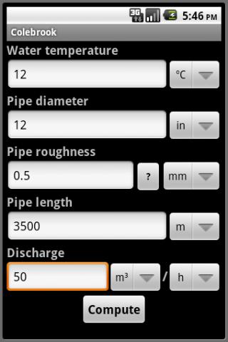 COLEBROOK program calculates the head loss in pressure pipe, using Darcy-Weisbach formula and Colebrook formula.