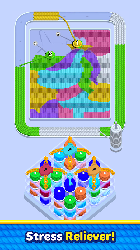 각 레벨에서 여러분의 목표는 여러 트레이에서 올바른 실타래를 선택하여 캔버스 위의 색깔 있는 점들과 연결하는 것입니다. 실들은 컨베이어 벨트를 따라 이동하며 쌓이고 엮여 점차 생동감 넘치는 그림으로 완성됩니다. 다채로운 실들이 부드럽게 흐르며 작품에 생명을 불어넣는 모습을 감상하며 편안한 시간을 보내세요.