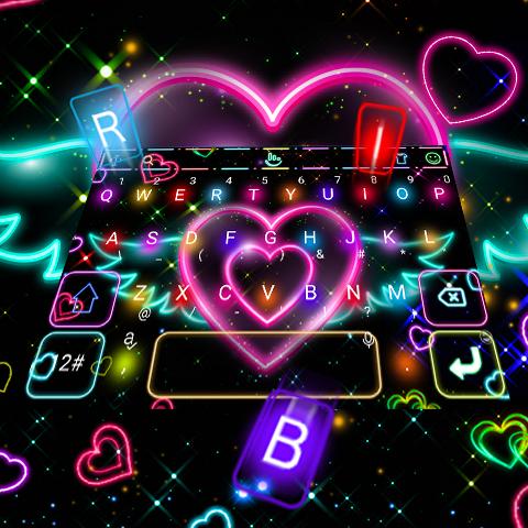 Colorful Neon Sparkling Heart Keyboard Theme 정보