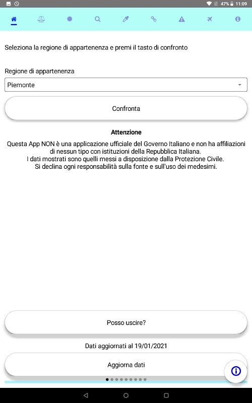 경고 :이 응용 프로그램은 이탈리아 정부의 공식 응용 프로그램이 아니며 이탈리아 공화국의 정부 기관과 아무런 관련이 없습니다.