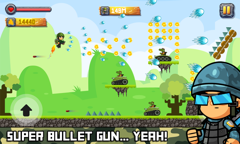 당신은 비행 중에 총을 가진 시작하고 원수를 죽일 걸어하지만, 각 게임을 통해 당신은 동전을 수집합니다 및 상점에서 새로운 특공대을 살 것이다! 재생 돌아가 다음 당신의 마음에 드는 특공대을 선택합니다.