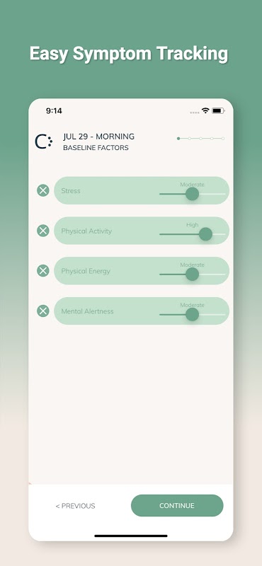 - 증상, 월경, 기분, 수면, 스트레스, 정신 건강 및 불안을 포착하는 유연한 추적.