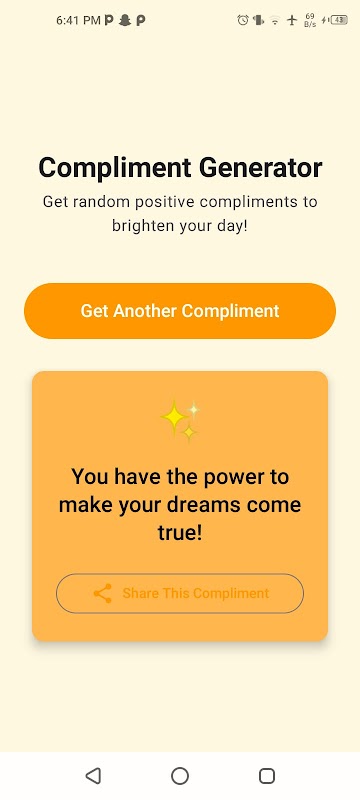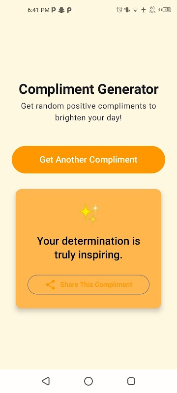 칭찬 생성기를 사용하면 단 한 번의 탭으로 기분 좋고, 친절하고, 격려하는 칭찬을 받을 수 있습니다. 자신에게 동기를 부여하거나 다른 사람의 하루를 밝게 해주고 싶을 때, 이 앱이 간편하게 도움을 드립니다.