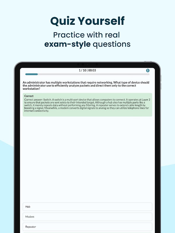 이 앱은 CompTIA 자격증 시험 준비를 돕기 위해 개발된 독립적인 교육 도구입니다. CompTIA(컴퓨팅 기술 산업 협회)와 어떠한 방식으로도 제휴, 보증 또는 후원되지 않습니다.