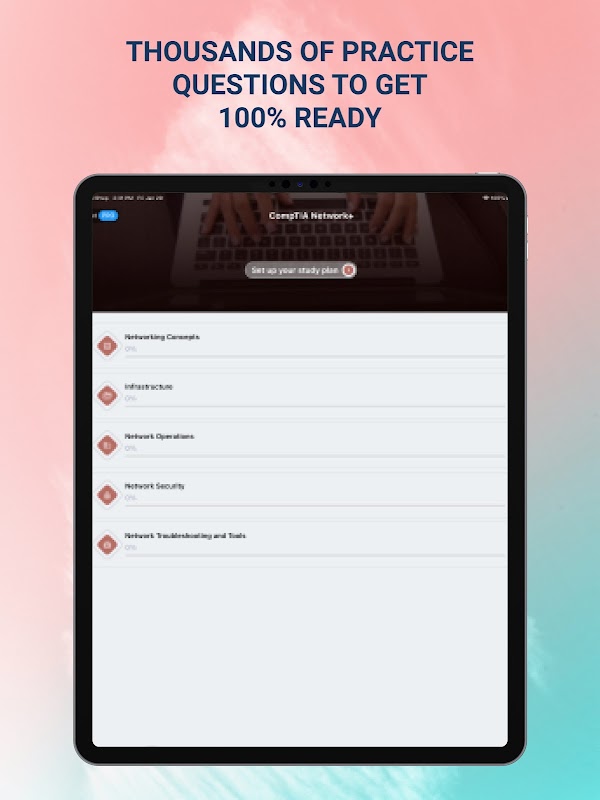 이 앱은 시험 N10-008의 실제 CompTIA 목표를 밀접하게 따르도록 구성되어 있습니다. 따라서 지정된 각 CompTIA Network+ 목표에 필요한 정보를 쉽게 찾을 수 있습니다. 이 앱에서 사용하는 객관적인 초점 디자인은 알아야 할 정보를 쉽게 식별하고 액세스할 수 있기 때문에 중요한 기능입니다. 알아야 할 내용이 많으며 Network+ 시험을 위한 무료 연습 테스트를 통해 더 많은 작업이 필요한 부분을 찾고 학습 시간을 최대한 활용할 수 있습니다.