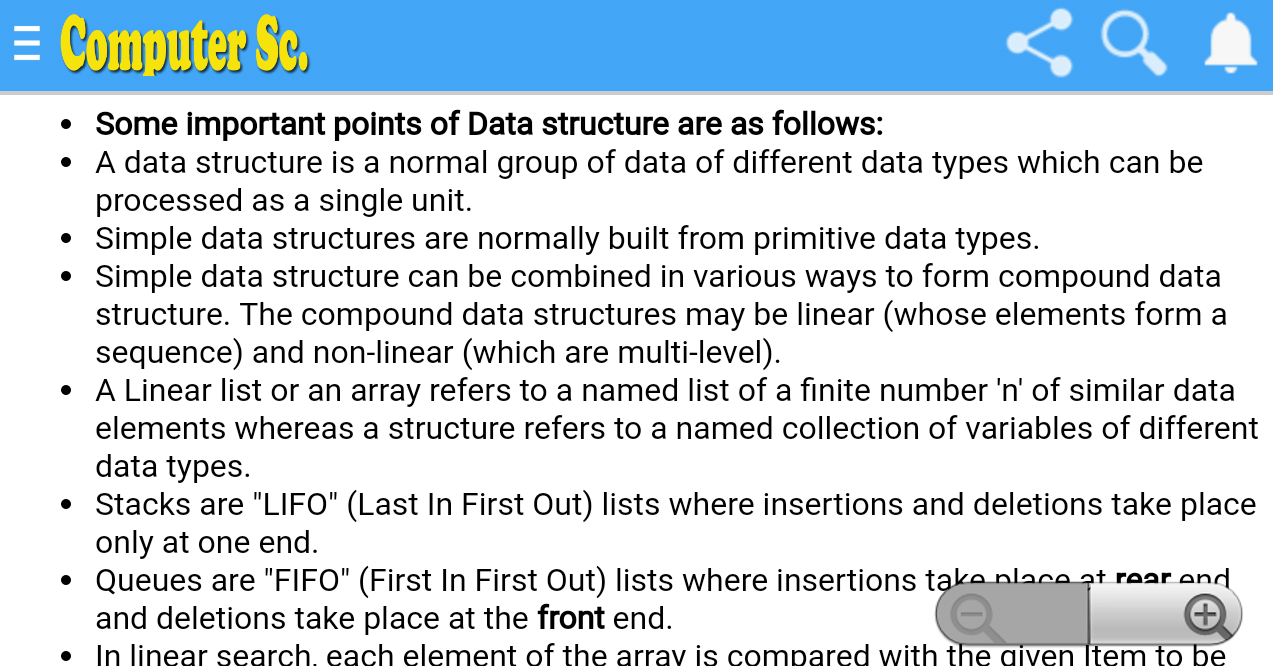 이 응용 프로그램은 매우 간단한 사용자 인터페이스가 있습니다. Computer Science에 대한 정보가 필요할 때마다 클릭하면됩니다.