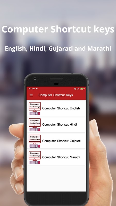 힌디어, 영어, 구자라트 어 및 마라 티어의 컴퓨터 바로 가기 키