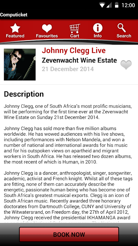 Get access to South Africa's best musicals, concerts, live events, rugby, soccer and other sporting events; and book it right from your Android smartphone.
