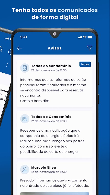 • 예약: 주민들은 ConectABR 앱을 통해 공용 공간(바베큐 그릴, 파티룸…)을 예약합니다. 더 이상 공간의 의제를 확인하기 위해 컨시어지나 건물 관리자에게 전화하지 않아도 됩니다.
