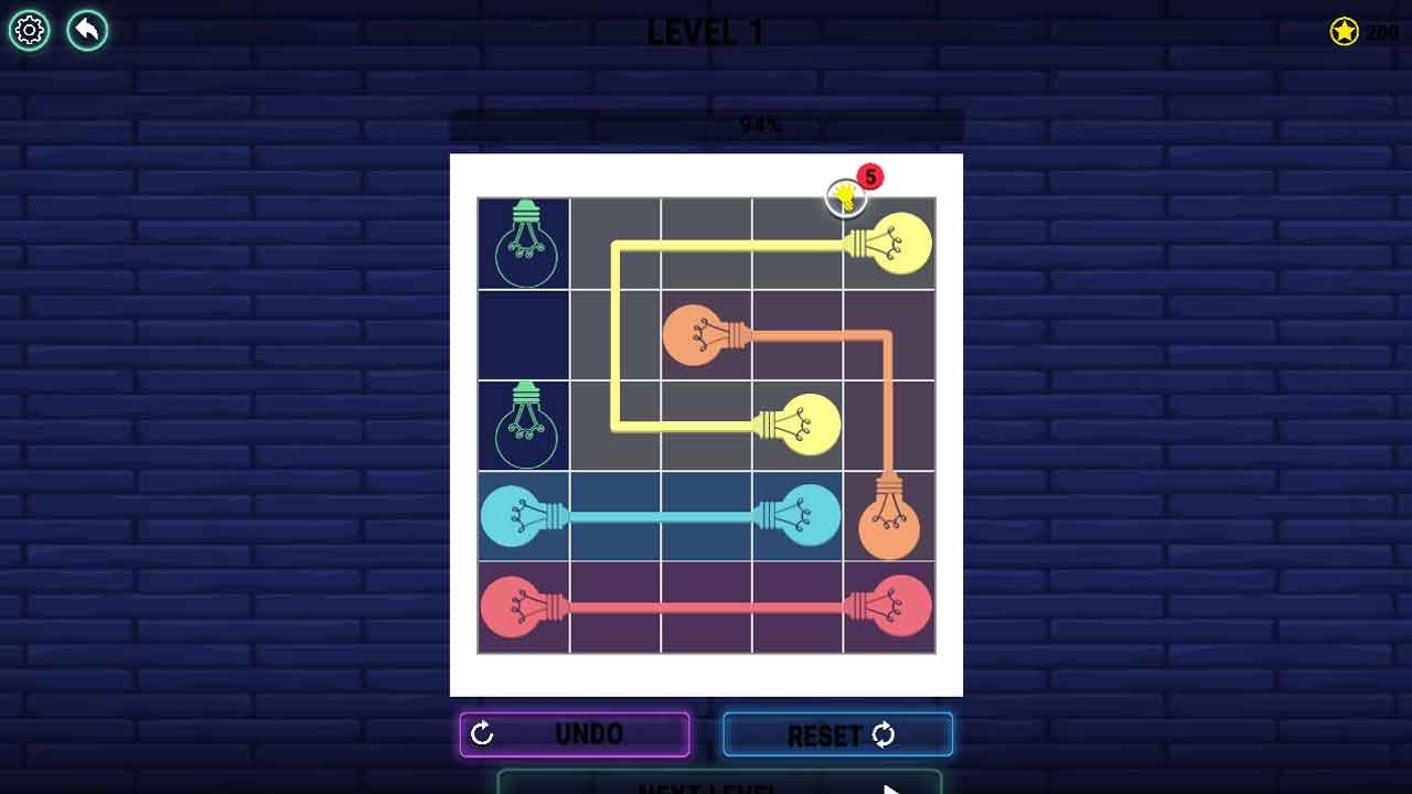 • Smooth and easy one touch controls to swipe and connect lines with glowing, colorful bulbs