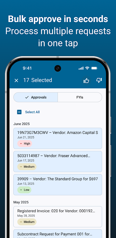 CMiC 워크플로 알림 및 승인 요청을 관리하고 앱에서 바로 AP 송장 또는 하도급 지급 애플리케이션 배포 조정과 같은 작업을 완료하세요!