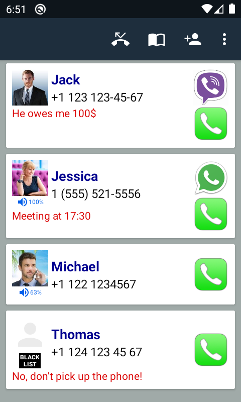 1.2. Controlling the phone volume for this contact, if the sound in the phone is turned off, then the program will turn on the sound in the phone and this contact will always be able to call you.