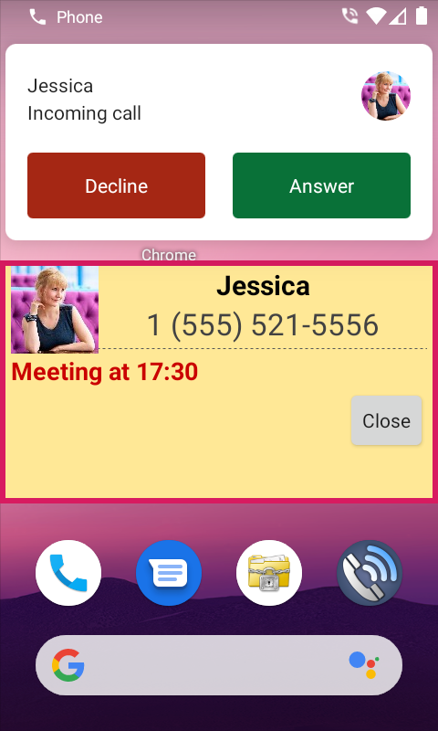 1.1. Determining a contact by incoming number and displaying notes for this contact.