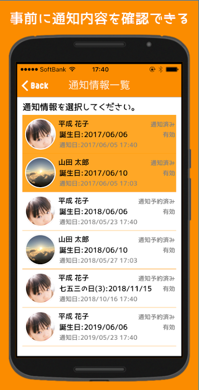 (3)다음은 이벤트일의 2주일 전(※1)과 당일에 통지 정보가 도착하므로, 통지가 도착하면 내용을 확인해, 메일이나 라인 또는 FaceBook등으로 축하의 메시지를 송신합시다.