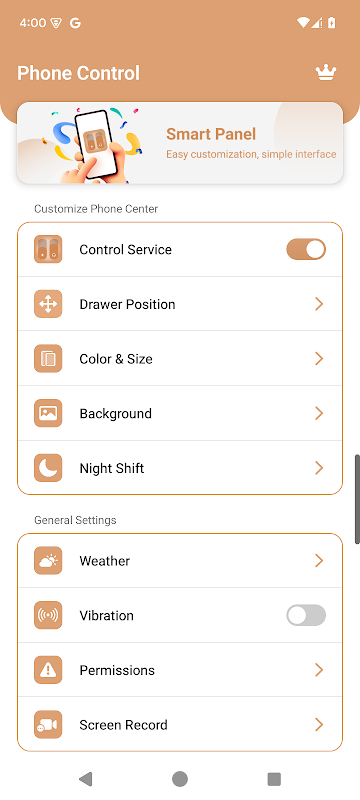 - 빠른 설정 액세스: "전화 제어"는 자주 사용하는 빠른 설정에 대한 빠른 액세스 바로가기를 제공합니다.