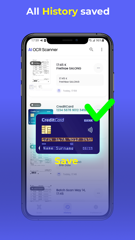 ✓ 편집 및 정리: 앱에서 추출한 텍스트를 직접 편집하고 기록 탭에서 스캔 내용을 정리합니다.