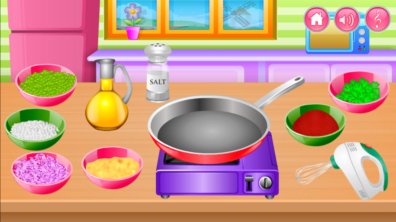 이 부엌 요리 게임에서 우리는 당신을 위해 여러 조리법이있다. 당신은 빵을 선택할 수 있습니다 : 미트볼, 스시, 피자, 셔벗, 케이크 감자 튀김과 햄버거, 도넛, 수프, 스파게티.