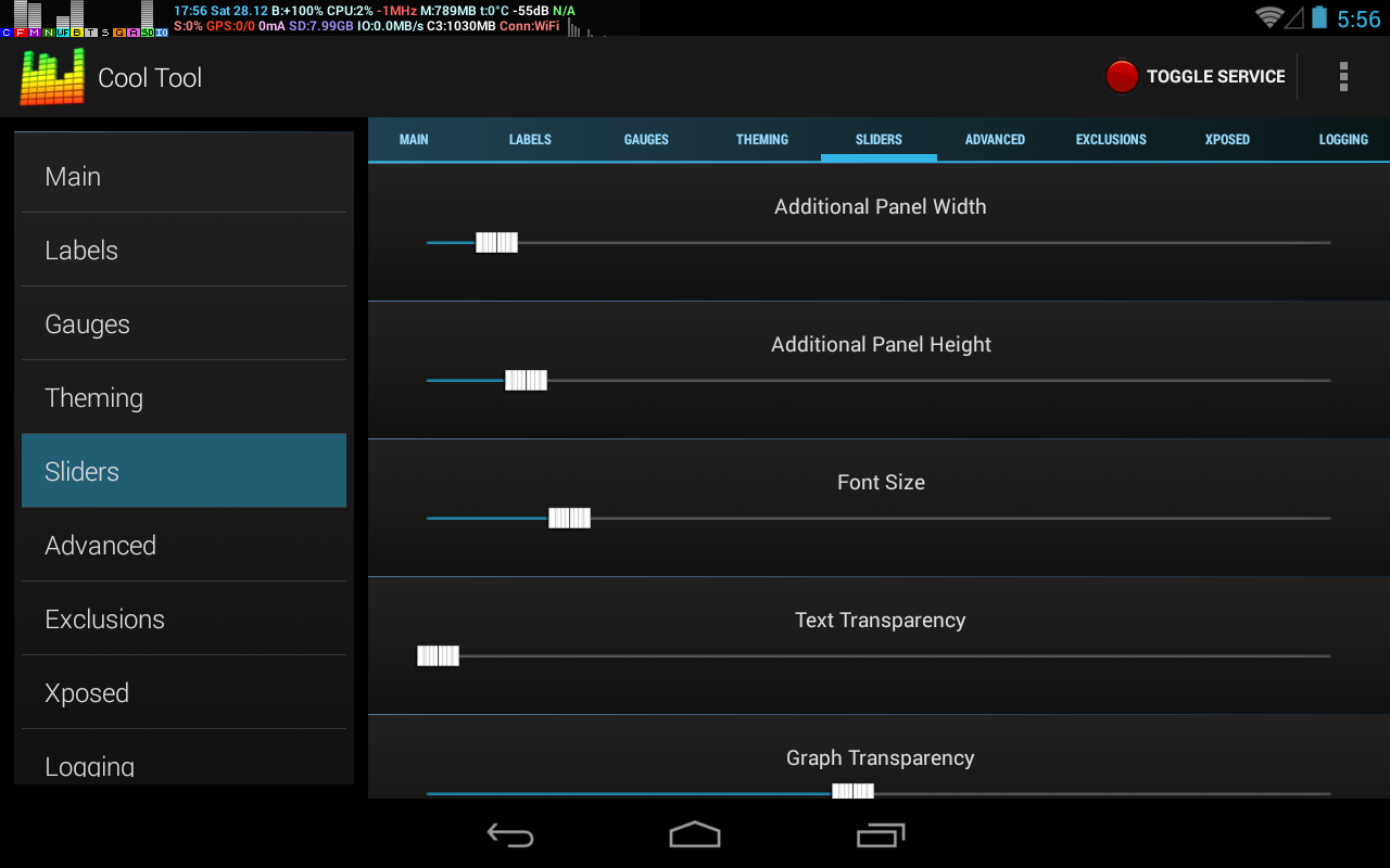 게이지가 너무 많으면 배터리가 매우 빨리 소모 될 수 있습니다. 필요하지 않은 기능을 선택 취소하십시오. Btw, Cool Tool은 잠자기 상태였으며 디스플레이가 꺼질 때 아무것도 그리지 않았습니다. 절 전용입니다.