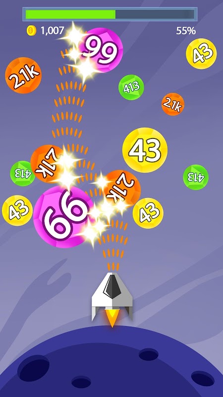 행성 공만큼 폭발시킬 필요가있을뿐만 아니라 공격으로부터 피하는 것이 중요합니다. 즉시 공격을 당하면 게임 오버가 발생합니다.