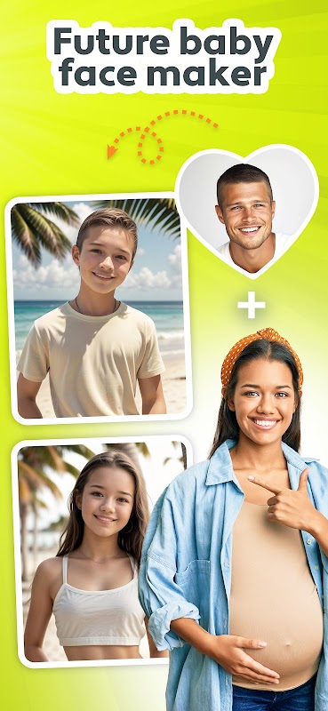 If you wonder your future kids face, you are in the right place! Try amazing future baby generator and see what your baby will look like and what my baby look like? With ai couple photo generator app, future baby face generator and photolab cartoon photo editor, you can easily create amazing super ai hair changer!