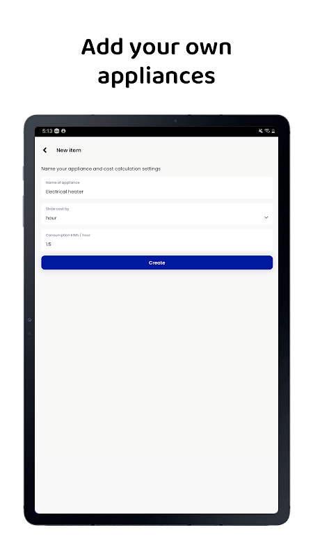 1. Add your own appliances and consumption settings (kWh usage)