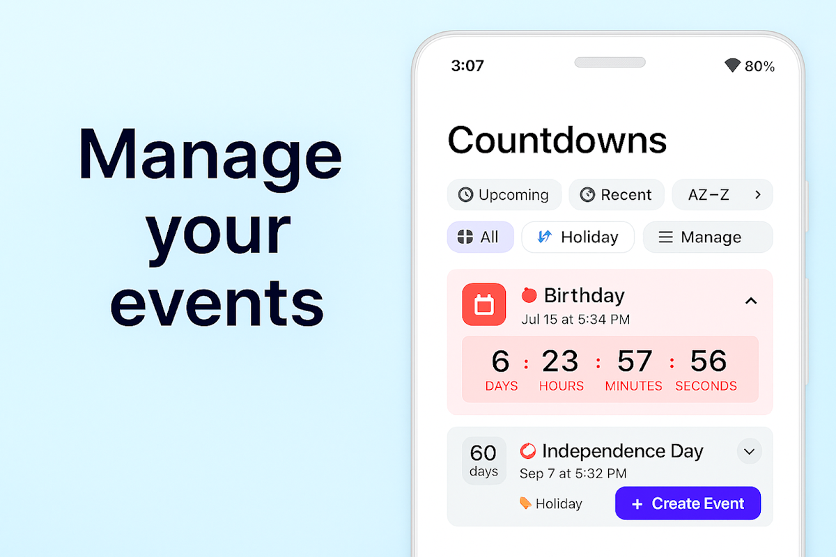 간단한 날짜 확인부터 정교한 이벤트 카운트다운 계획까지, 기대감의 기쁨을 경험해 보세요.