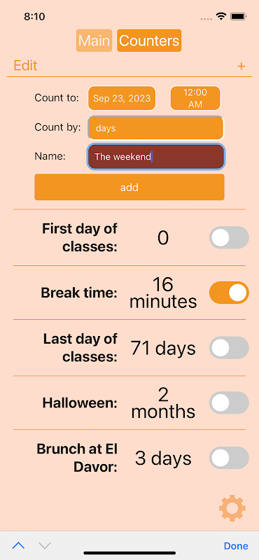 원하는 날짜까지 시간을 카운트다운하세요.