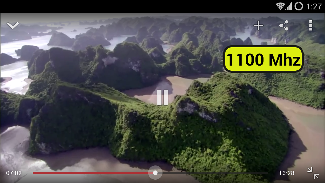 CPU floating window frequency monitor. This tool app creates a new floating window ( button ) that can be dragged on top of all activities. It measures current CPU FREQUENCY, so it is great tool for developers to test their apps. Bear in mind that this app itself creates a Thread that is updated every 0.3 seconds so it won't always show the phone Idle Frequency when doing nothing.