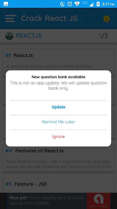 Crack ReactJs provides you a wide set of Interview Question and Answer bank which includes JavaScript, Redux, Webpack collected from various authentic sources and guides you to get better exposure in your career. This app also used for learning react js from basic including java script. It supports offline reading of question sets. It's best for beginners who wants to practice reactjs coding.