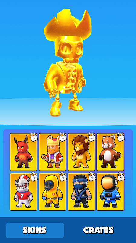 Simulate the opening of crate and get your favorite skin by using virtual gems and tokens to find your stumble guys skins game and emoticon. You can try various skin, emoticon stickers and you can spin for opening crates and get fun gems for your stumble guys character play. This crate simulator will spawn many charater or avatar so you can check out the skin before try it before playing.