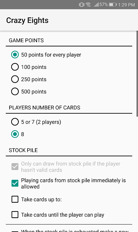 - 여러 CPU에 대해 Crazy Eights 재생 (2 ~ 6 명)