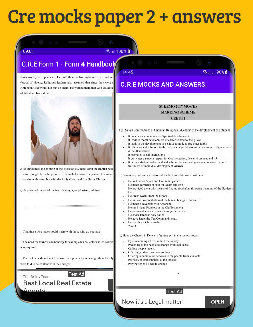 크레; 모의 답변 응용 프로그램에는 모의 과거 논문과 마킹 체계가 포함되어 있습니다. 이 응용 프로그램은 학생/사용자가 KCSE 시험에서 Cre 질문을 다루는 기술을 습득할 수 있도록 설계되었습니다.