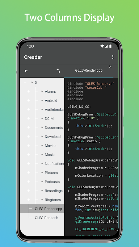 Creader는 구문 강조 및 스타일을 지원하는 간단한 소스 코드 뷰어입니다. 파일에 따라 구문을 자동으로 선택합니다.