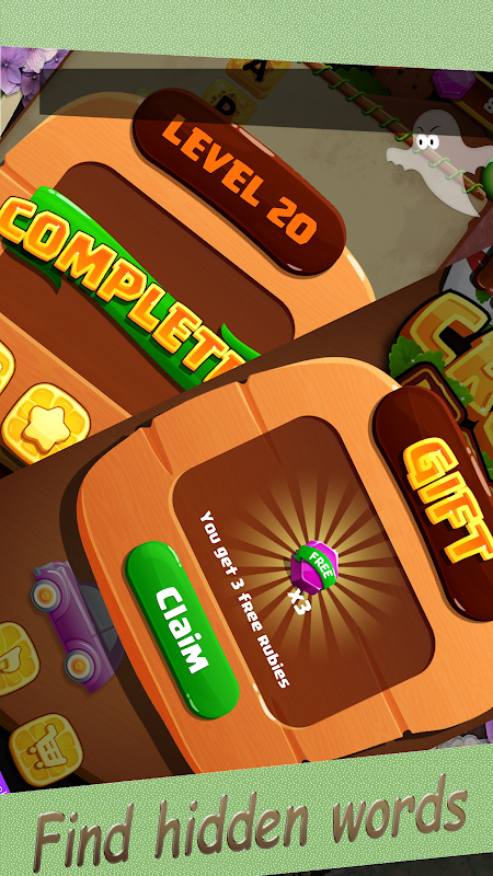 또한 숨겨진 단어를 찾아서 무료 동전을 얻으십시오.