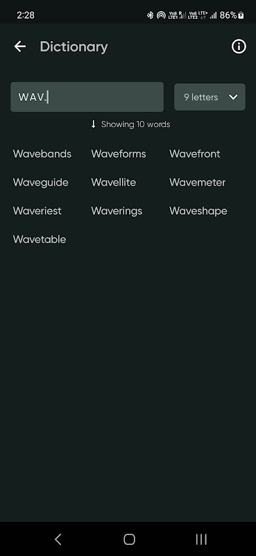 • 숫자를 바로 가기로 사용하여 일치하는 단어를 찾을 수도 있습니다. "H4"를 입력하면 Habit, Hairy, Happy...라는 단어가 표시됩니다.