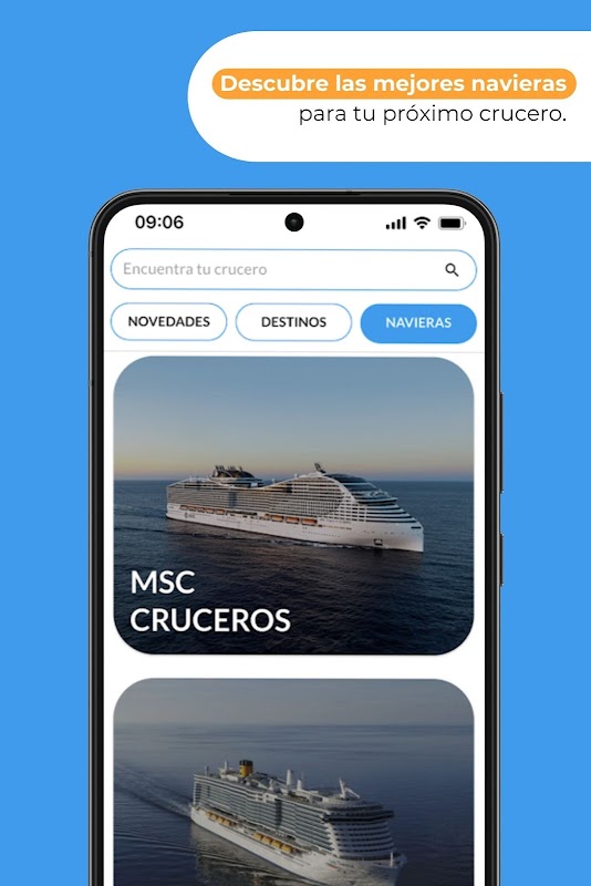 동일한 홈페이지에서 크루즈에 대한 최고의 제안과 프로모션에 대한 지속적인 업데이트를 확인할 수 있습니다. 또한, 앱 내에는 다양한 섹션이 있습니다. 크루즈 검색이 이보다 쉬웠던 적은 없었습니다!
